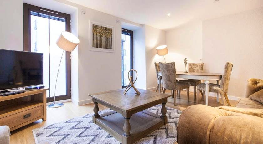 Luxury accommodation equipped with flat-screen TV and satellite channels. Includes seating area, dining area and fully fitted kitchen with kitchenware.