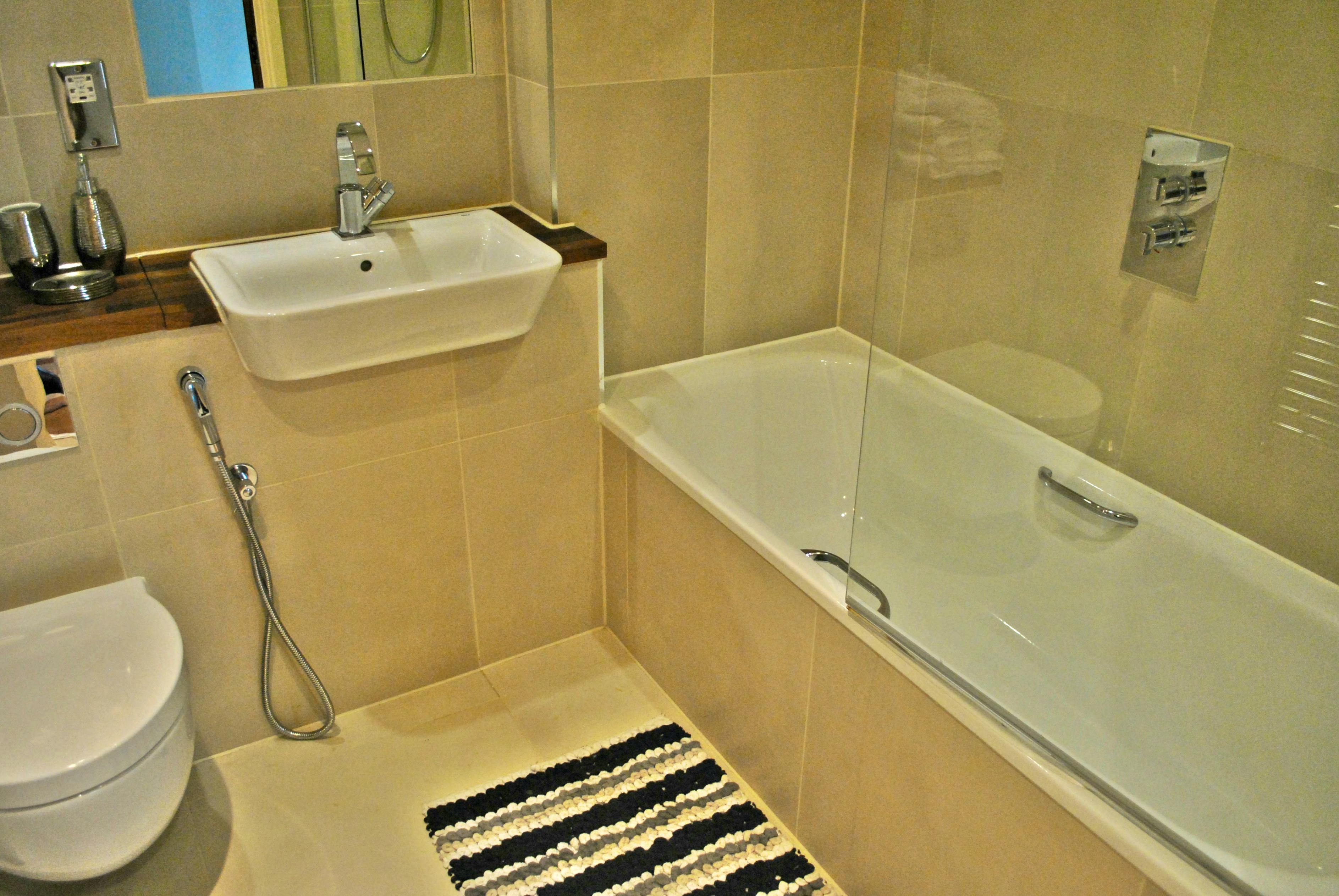 Private bathroom with shower bathtub. Towels and bed linen are offered.